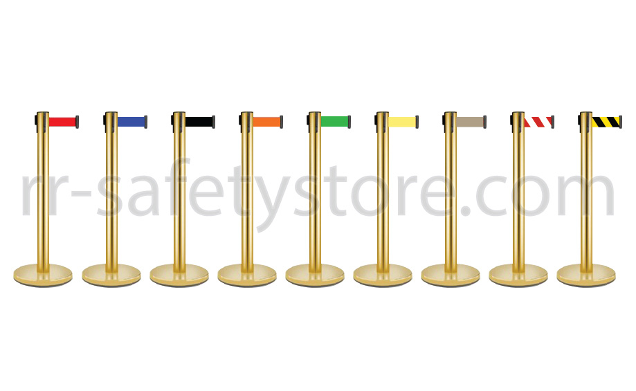 เสากั้นทางเดินสแตนเลส (สีทอง) – ฐานกลม สายดึงกลับอัตโนมัติ 1 สาย